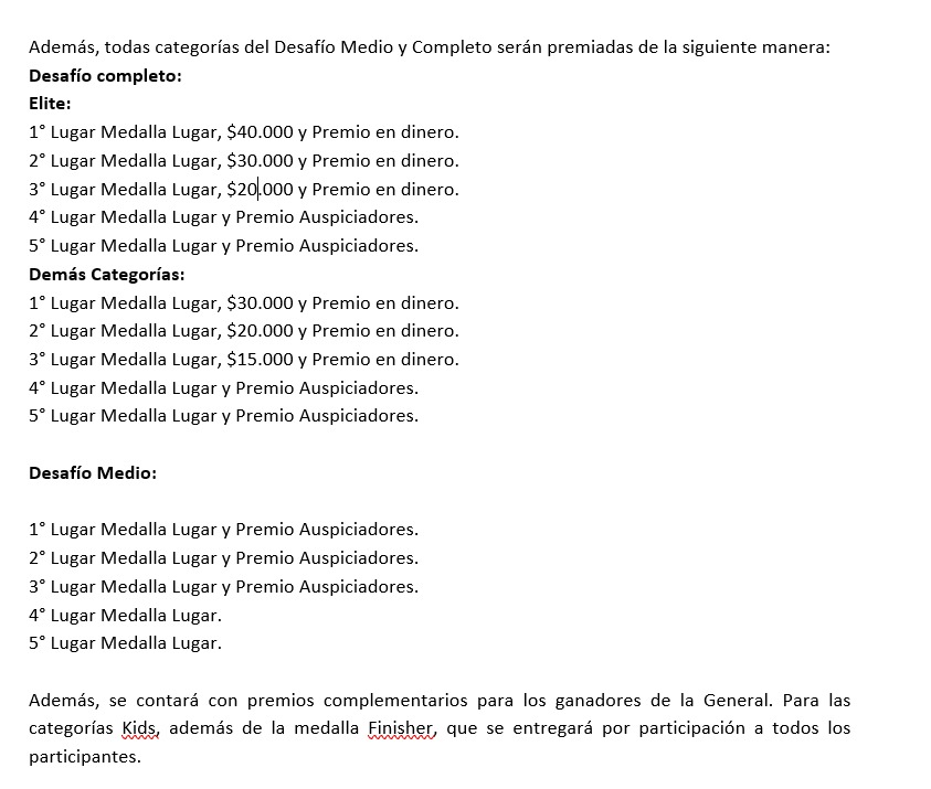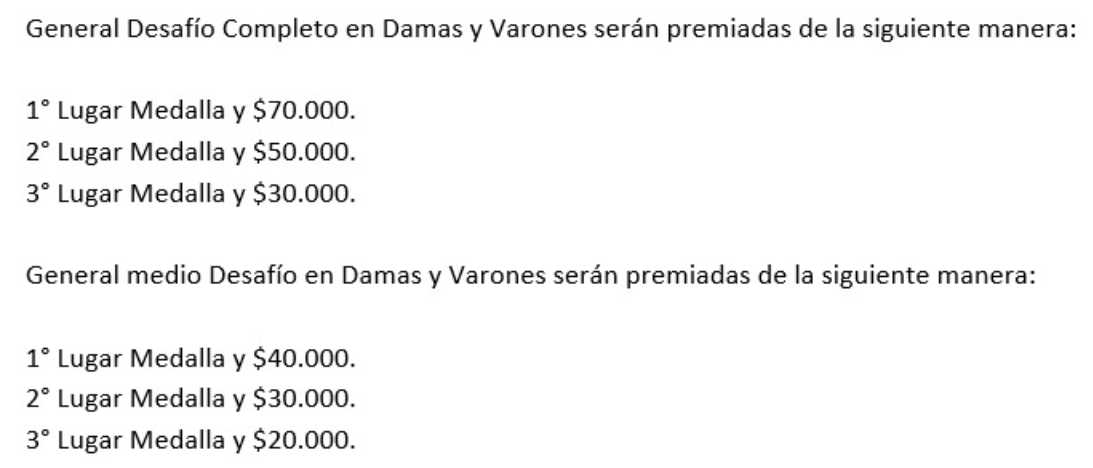 | DESAFÍO COMPLETO | Amateur - Varones | $16,000 | $20,000 |